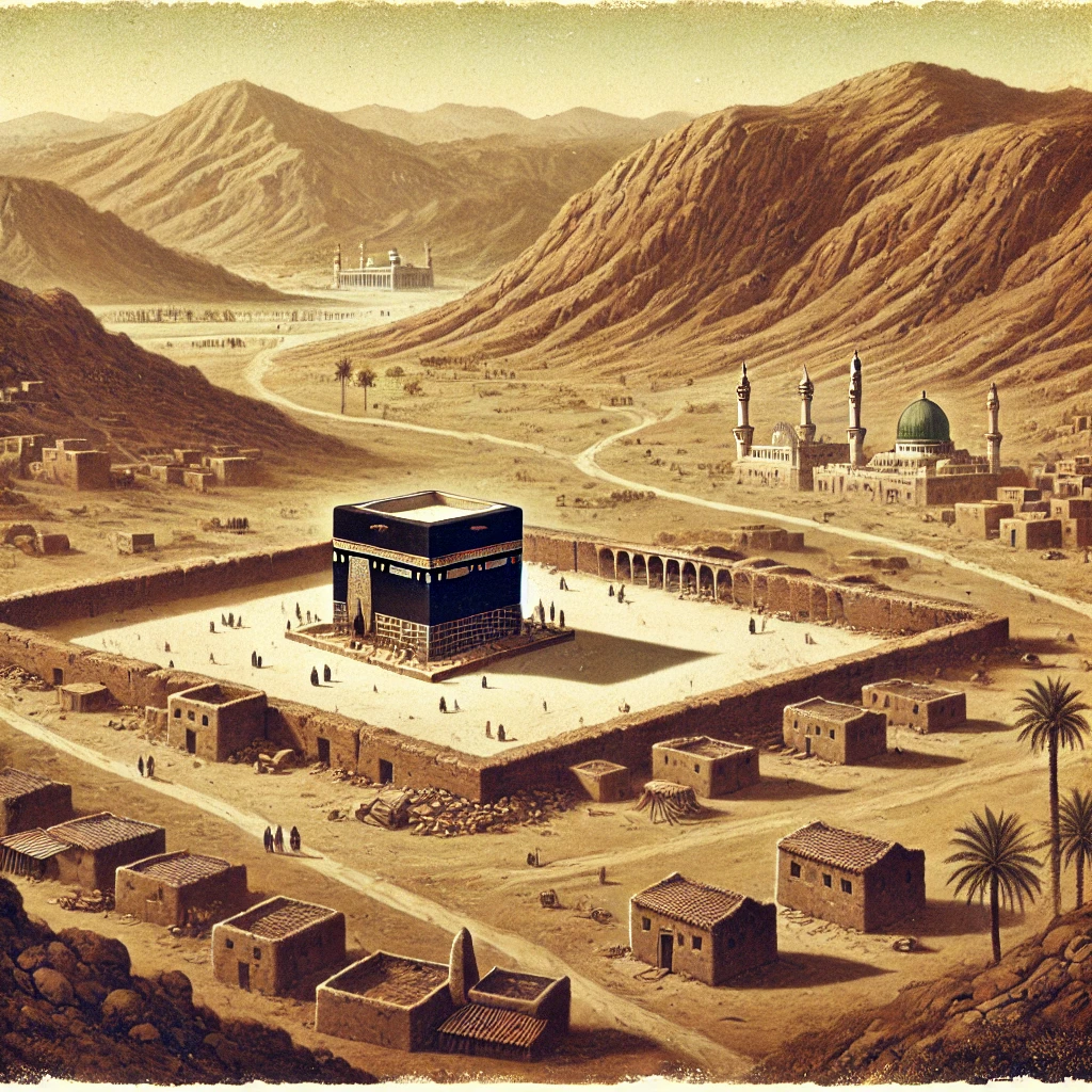 ئەگەر بگەڕێینەوە بۆ سەردەمەکانی پێش ناردنی پێغەمبەر (د.خ) و سەیری نەخشەی جیهانی کۆن بکەین، دەبینین کە ناوچەی ناوەندی و گرنگی ئەو جیهانە ڕۆژهەڵاتی ناوەڕاست بووە، بە تایبەتی نیمچەدوورگەی عەرەبی و وڵاتی شام. زۆربەی بازرگانییە نێودەوڵەتییە گرنگەکان بەم ناوچەیەدا تێپەڕیون. وەک دەبینن، لە باکووری ڕۆژهەڵاتی نیمچەدوورگەکە وڵاتی فارسە و لە باکووری ڕۆژاوای ئیمپراتۆریەتی ڕۆمە، کە دوو هێزی باڵادەستی جیهان بوون. میسر لە ڕۆژاوا و وڵاتی حەبەشە لە باشووری ڕۆژاوا و لە باشووریش زەریای هیندی کە تێپەڕین بەوێدا دەگاتە وڵاتی هیند.